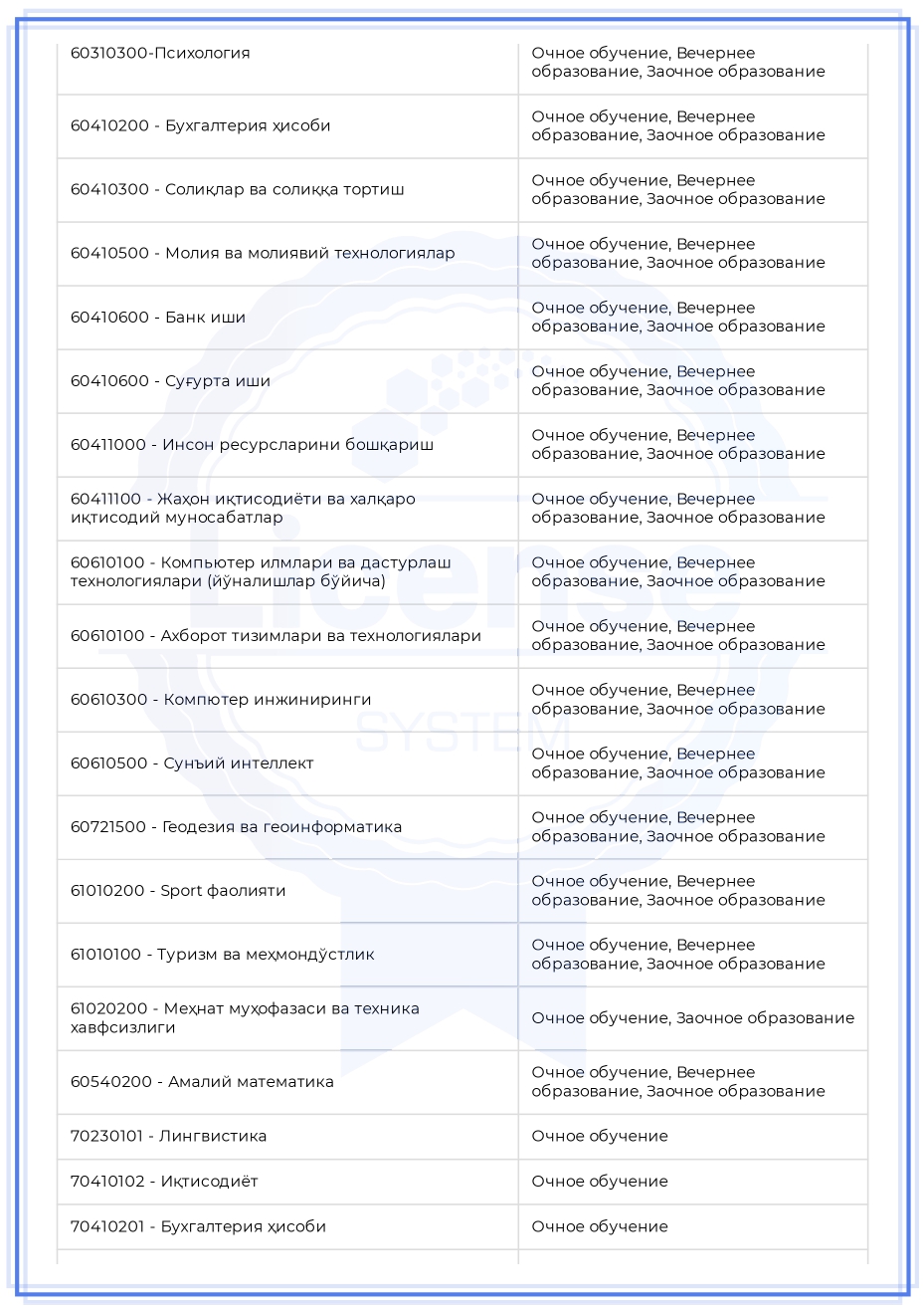 Список направлений нашего университета